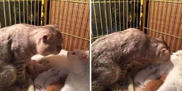 CatsAfter mother cat gave birth, she was exhausted. So, father cat came along to show his love and appreciation!