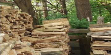 Can you spot the cat hidden in plain sight on this pile of logs?