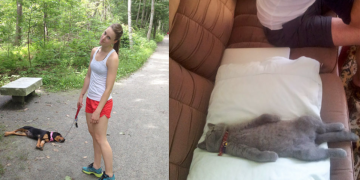 Anything is a pillow if your pets are tired enough. A lot of cuteness here!!!