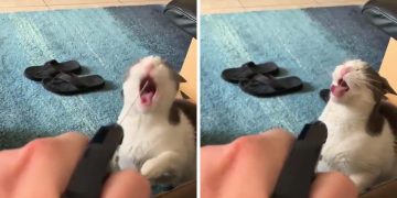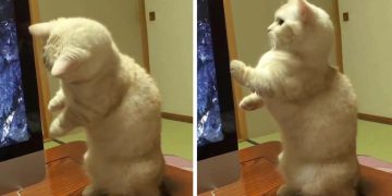 This adorable kitty gets the surprise of its life. Stoop correction machine for cat.