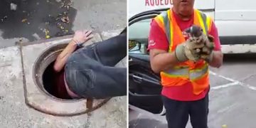 Man Rescuing Kitten From ‘Stinky’ Downtown Sewer!