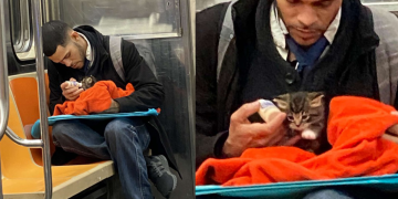 Heart Warming Moment: Man Cares for Tiny Kitten Adorably On Subway.