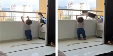 CatsThe Family Cat Protects the Child! Seeing the Toddler Wanting to Climb the Railing, Cat Rushes Out to Stop Him; “It’s Dangerous!”