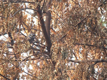 Can you spot the tiny owl sitting on a branch among the leaves? Its brown and white colors help it blend in with the leaves...